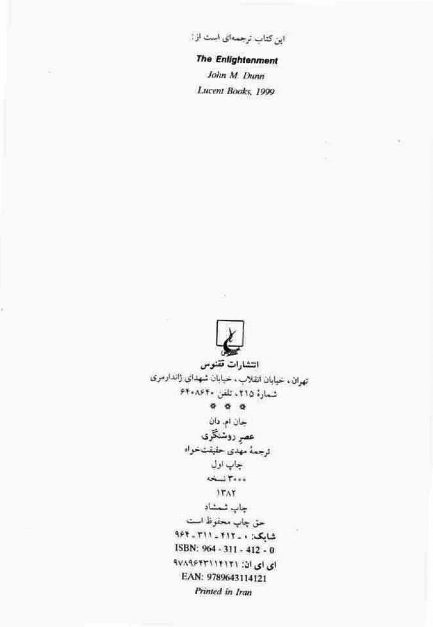 یادداشت عنوان روی جلد: عصر روشنگری =The englightenment.
