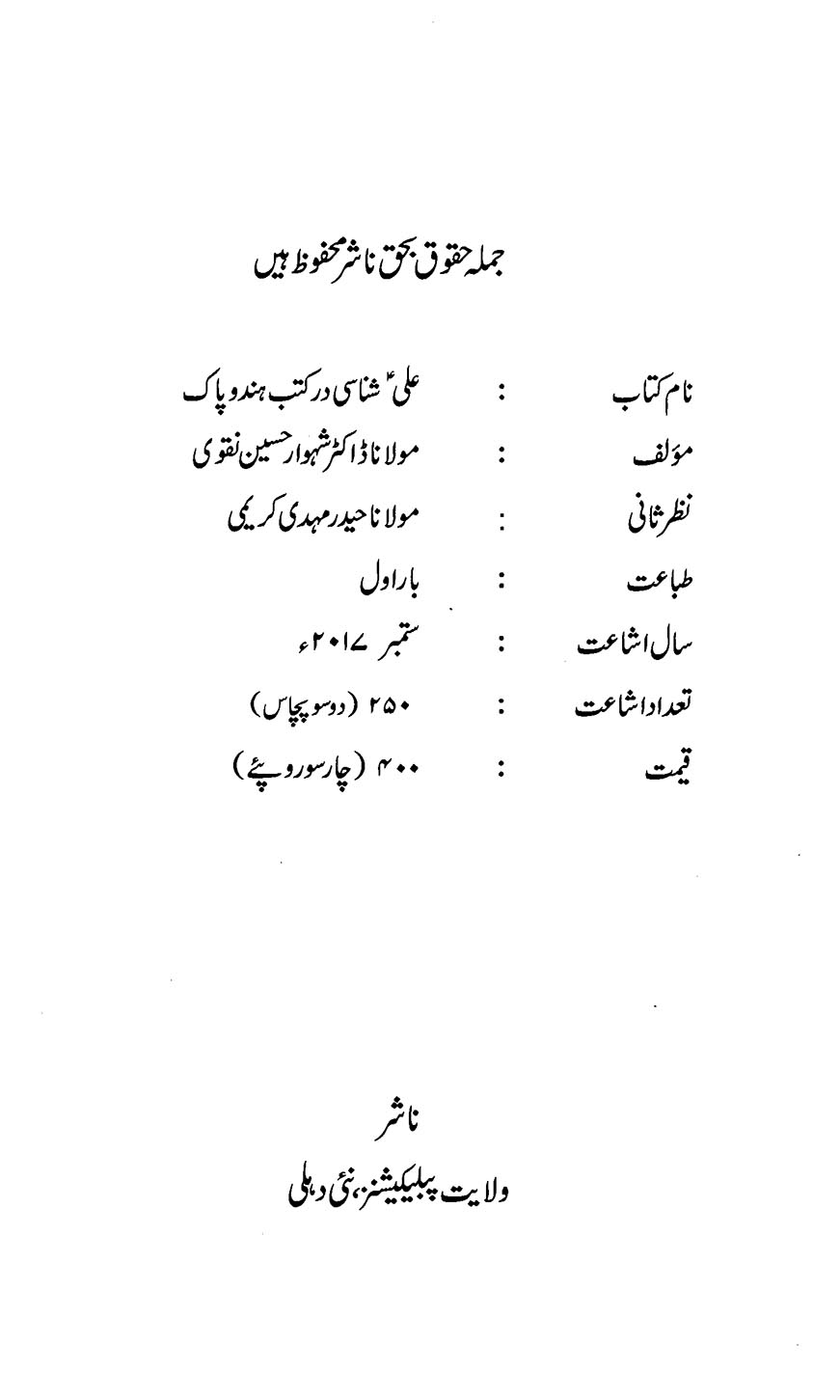 | شناسنامۀ کتاب | ناشرولایت محل نشردهلی نو تاریخ انتشار2017 چاپ اول زبان اردو |