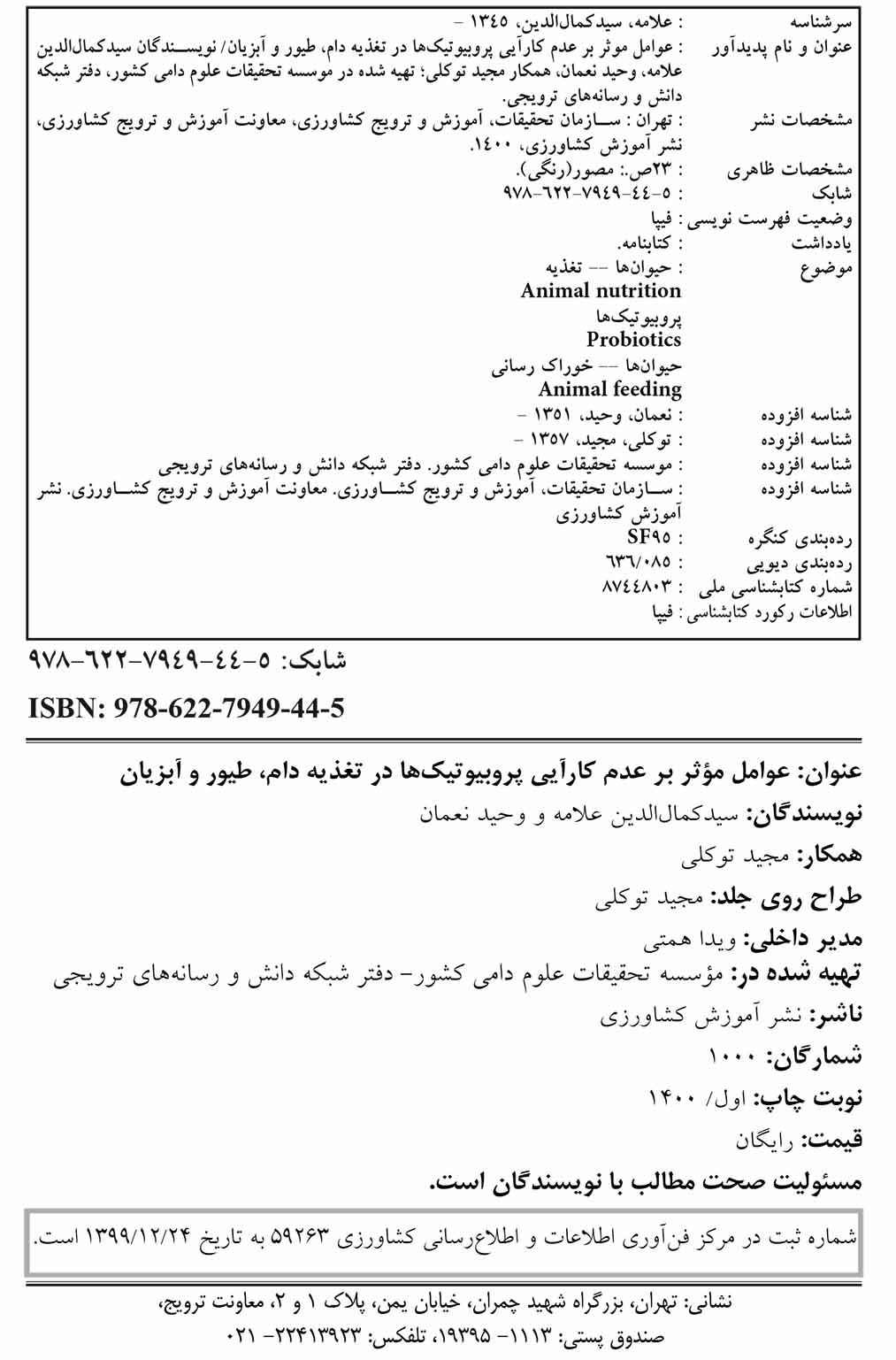نشریه فنی عوامل موثر بر عدم کارایی پروبیوتیک ها در تغذیه دام، طیور و آبزیان