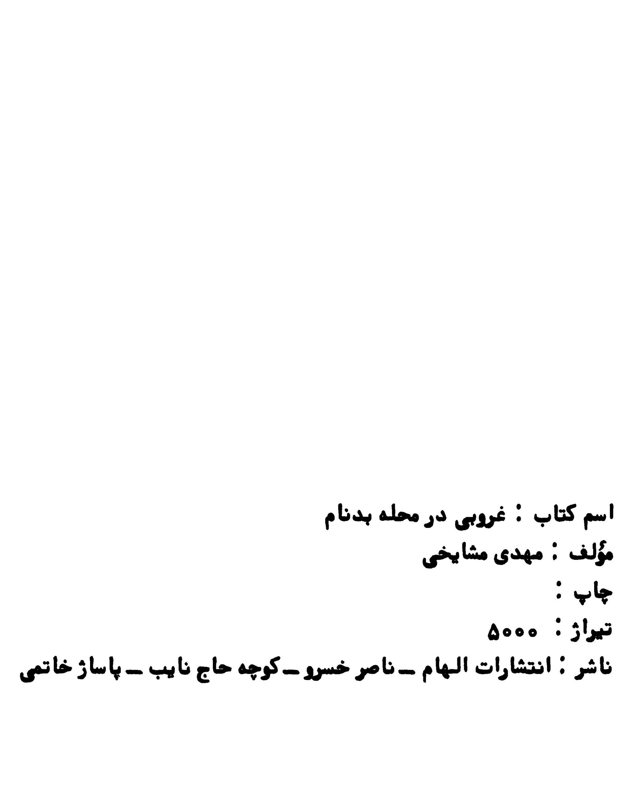 🔖 book_keywords : دانلود فایل pdf غروبی در محله بدنام نوشته مهدی مشایخی