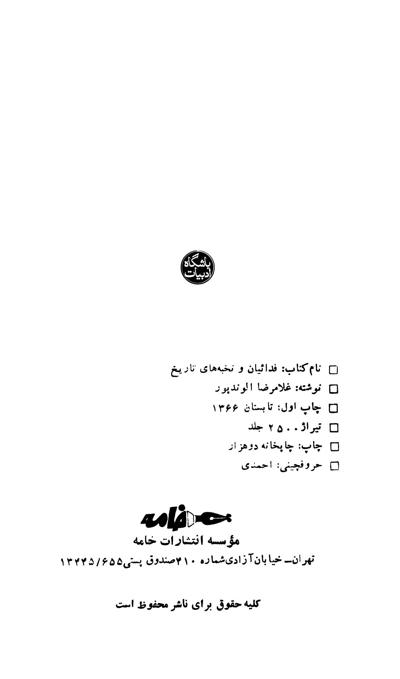 🔖 book_keywords : دانلود فایل pdf فدائیان و نخبههای تاریخ نوشته غلامرضا الوندپور