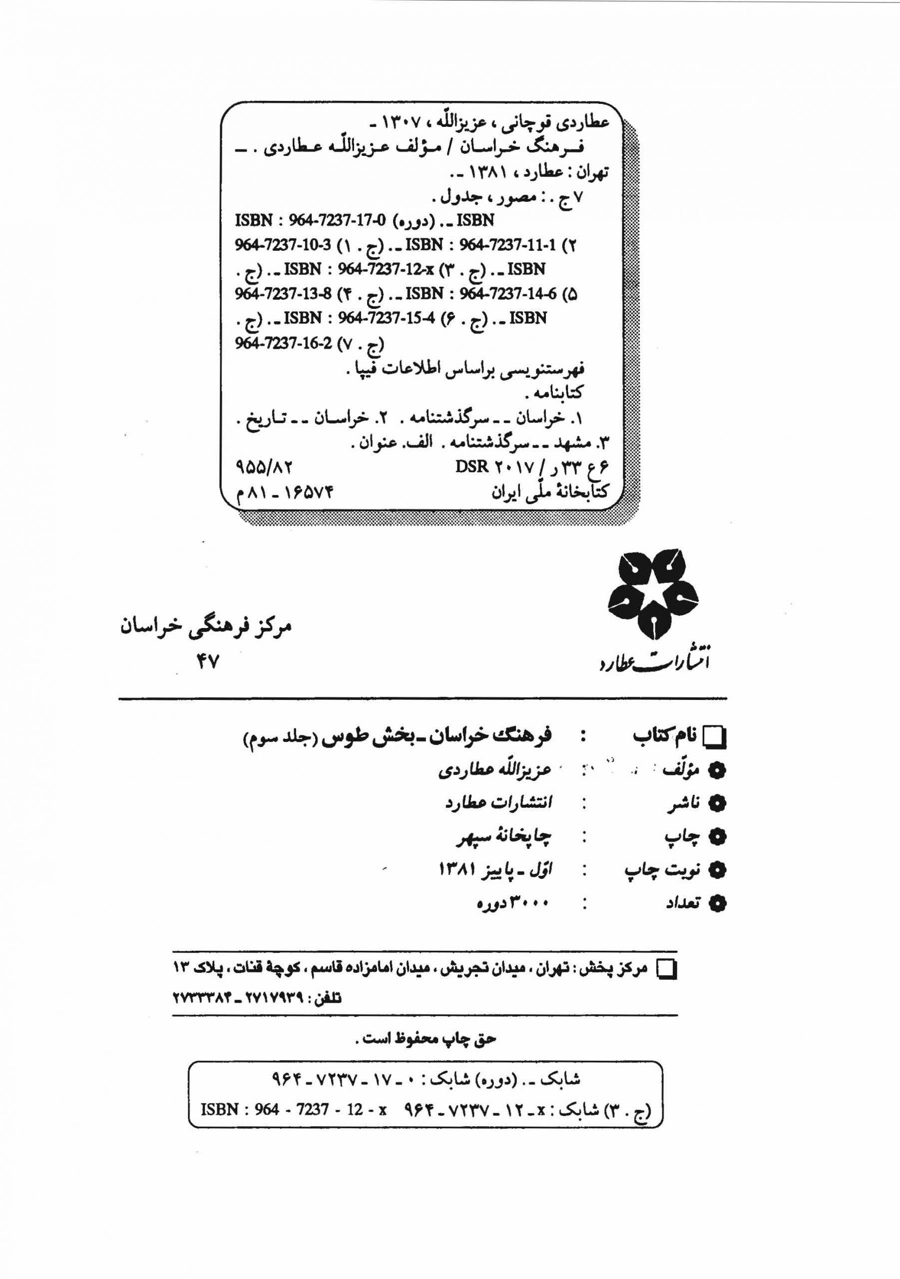 🔖 book_keywords : دانلود فایل pdf فرهنگ خراسان (جلد ۳) نوشته عزیزالله عطاردی