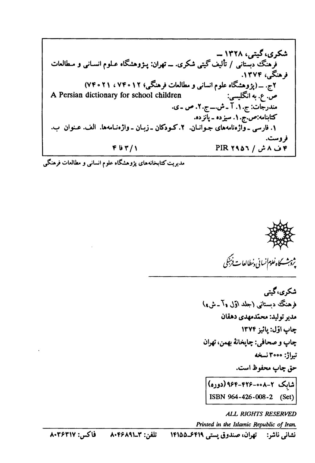 🔖 book_keywords : دانلود فایل pdf فرهنگ دبستانی جلد اول نوشته گیتی شکری