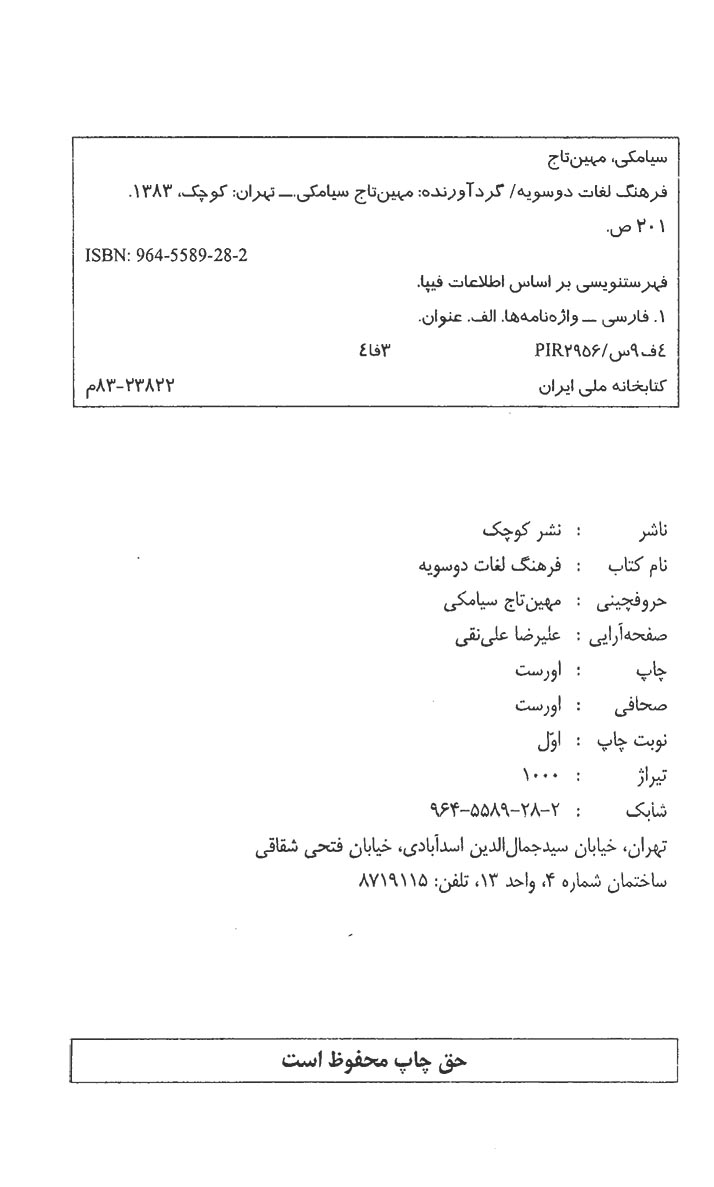 🔖 book_keywords : دانلود فایل pdf فرهنگ لغات دو سویه نوشته مهین تاج سیامکی