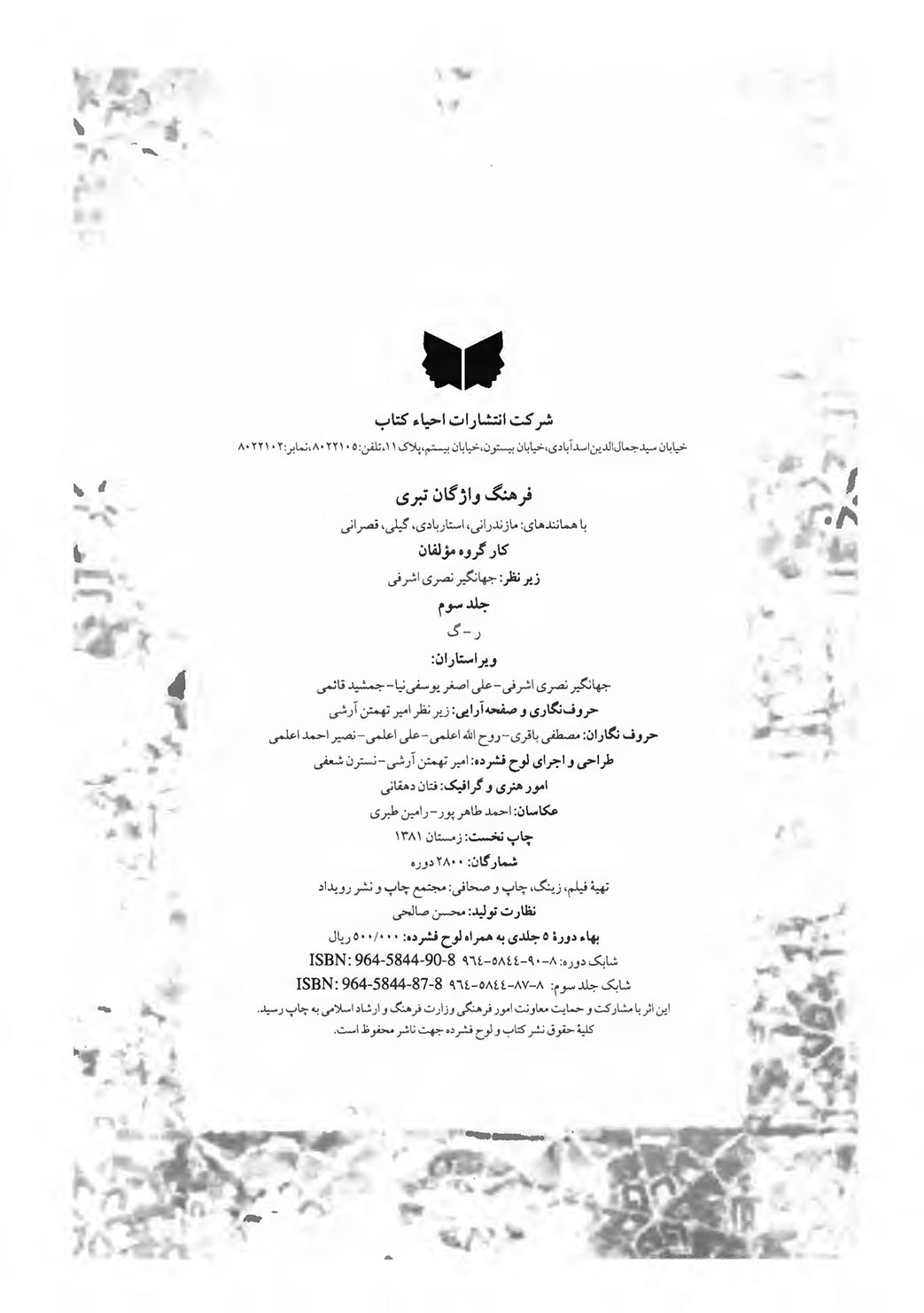 مشخصات نشر تهران‌: احیاآ کتاب‌، 1381.
