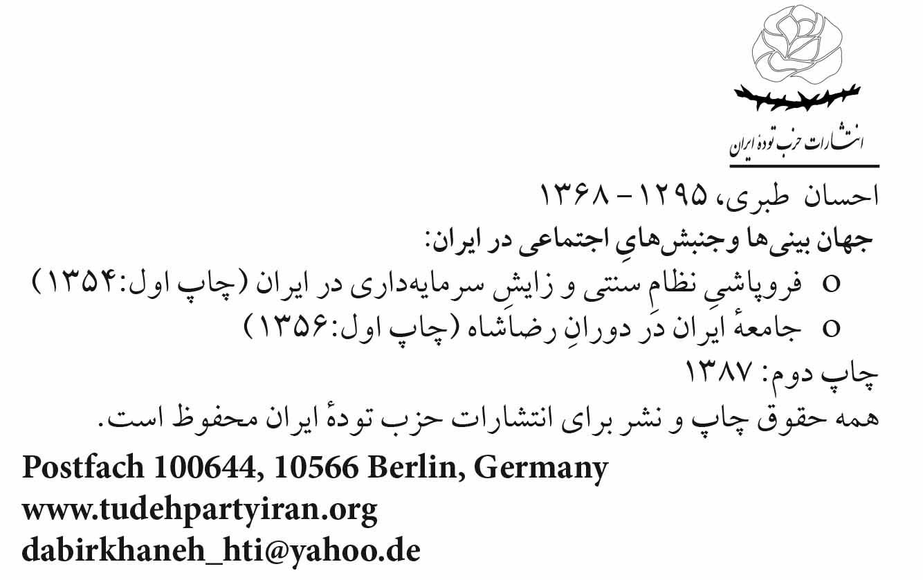 جزئی از بخش دوم کتا بجهان بین یها و جنب شهای اجتماعی در ایران اینک با عنوان دوم «فروپاشیِ نظامِ سنتی و زایش و گسترش سرمایه داری در ایران » نشر م ییابد.