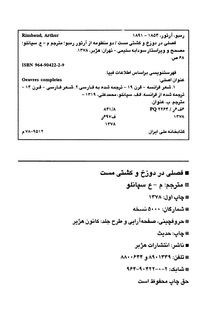 🔖 book_keywords : دانلود فایل pdf فصلی در دوزخ نوشته آرتور رمبو ترجمه محمدعلی سپانلو