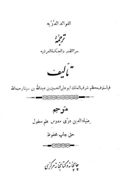 🔖 book_keywords : دانلود فایل pdf فوائد الدریه : ترجمه سر القدر و الحکمه العرشیه نوشته ابن سینا ترجمه ضیا الدین دری