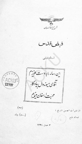 کتاب «فیض قدس» از آثار برجسته‌ی استاد خلیل‌الله خلیلی، شاعر ملی و عارف‌مشرب افغانستان است. این مجموعه شامل اشعار عرفانی، اخلاقی و معنوی اوست که در آن، خلیلی با زبانی فاخر و ریشه‌دار در سنت شعر کلاسیک فارسی، مضامین عشق الهی، سیر و سلوک، فنا و بقا، و رازهای روحانی انسان را به تصویر می‌کشد.