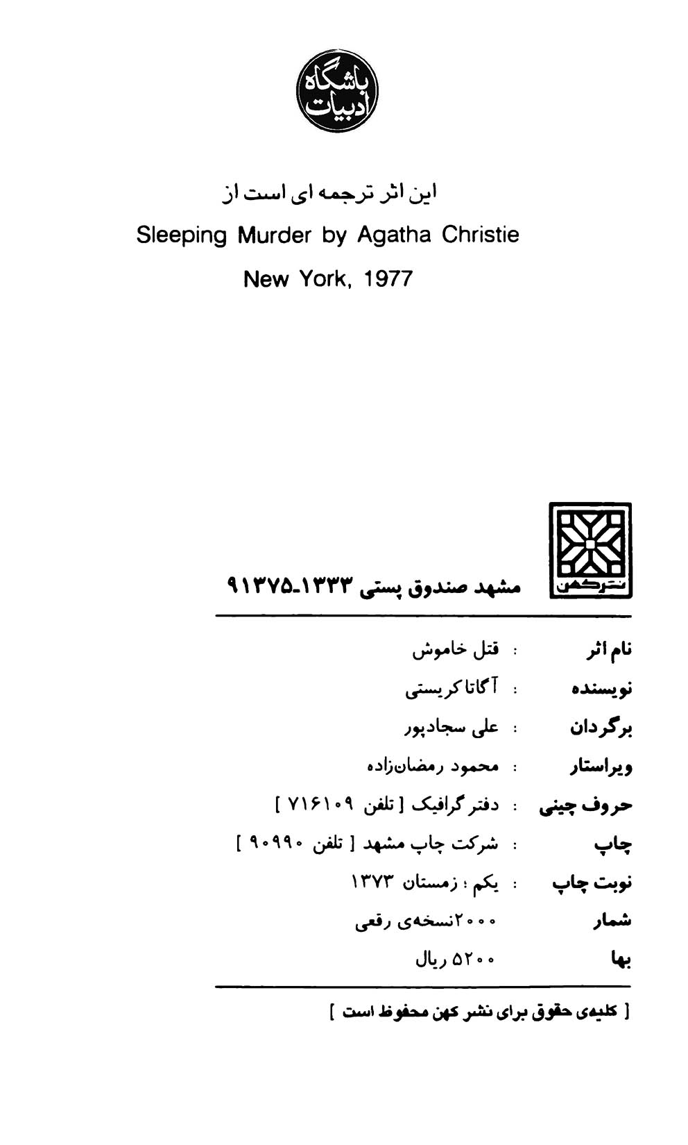 کتاب قتل خاموش آخرین ماجرای خانم مارپل، کارآگاه محبوب آگاتا کریستی است که اگرچه در سال ۱۹۷۶ منتشر شد، اما دهه‌ها پیش نوشته شده بود.