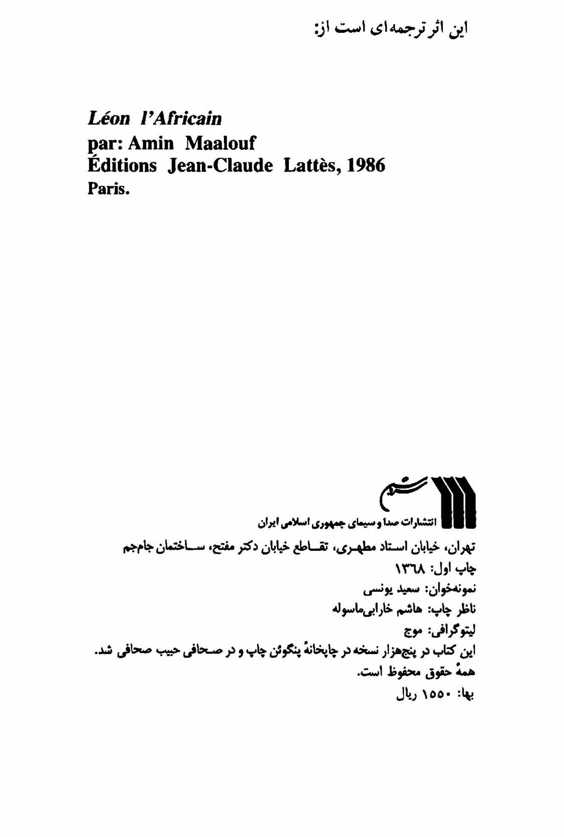 🔖 book_keywords : دانلود فایل pdf لئوی آفریقائی نوشته امین معلوف ترجمه قدرتالله مهتدی