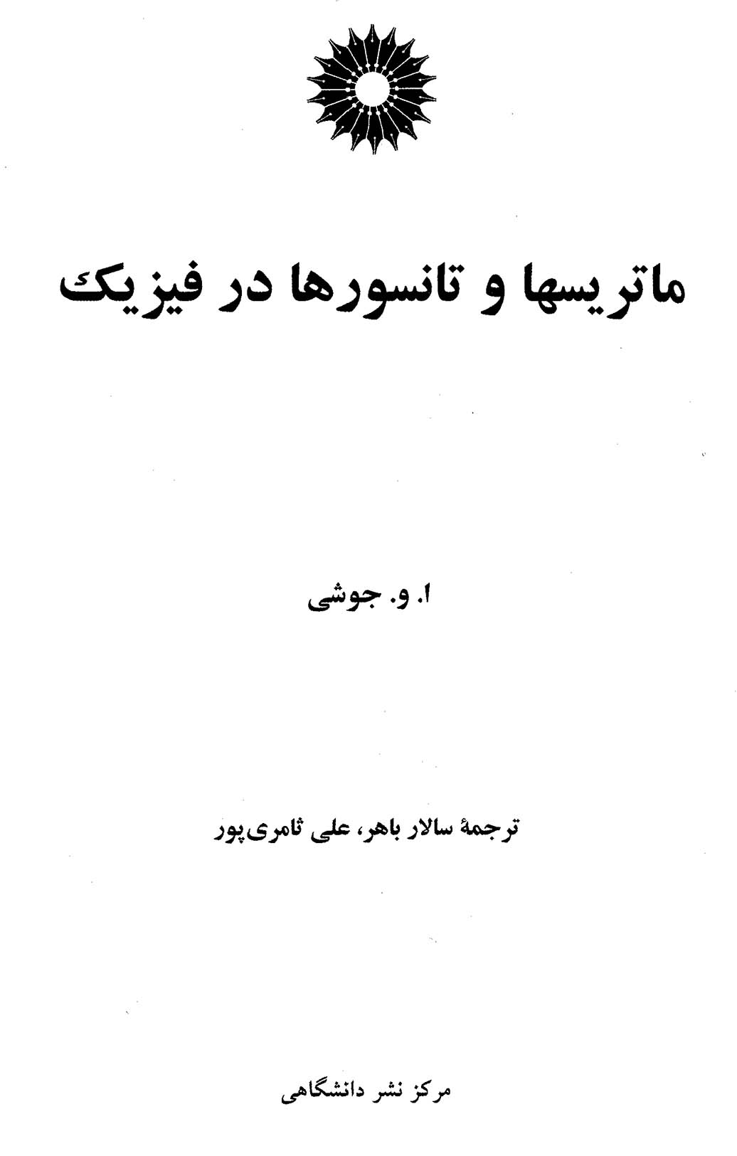 🔖 book_keywords : دانلود فایل pdf ماتریسها و تانسورها در فیزیک نوشته .و.جوشی ترجمه سالار باهر – علی ثامری پور
