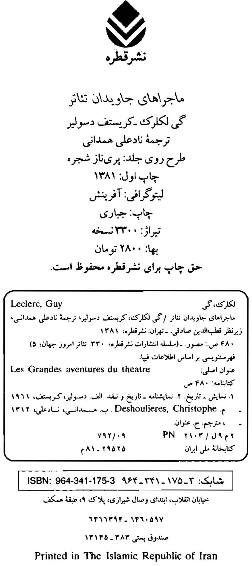 🔖 book_keywords : دانلود فایل pdf ماجراهای جاویدان تئاتر نوشته گی لکلرک، کریستف دسولیر ترجمه نادعلی همدانی