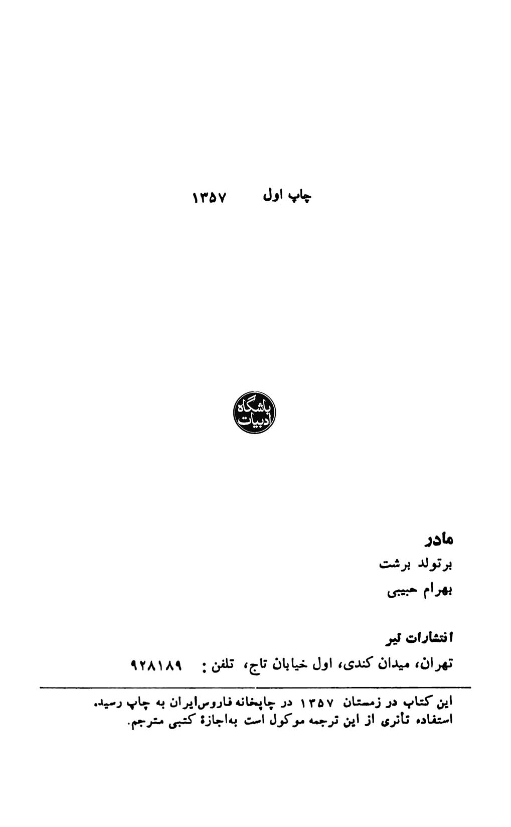 🔖 book_keywords : دانلود فایل pdf مادر نوشته برتولت برشت ترجمه بهرام حبیبی
