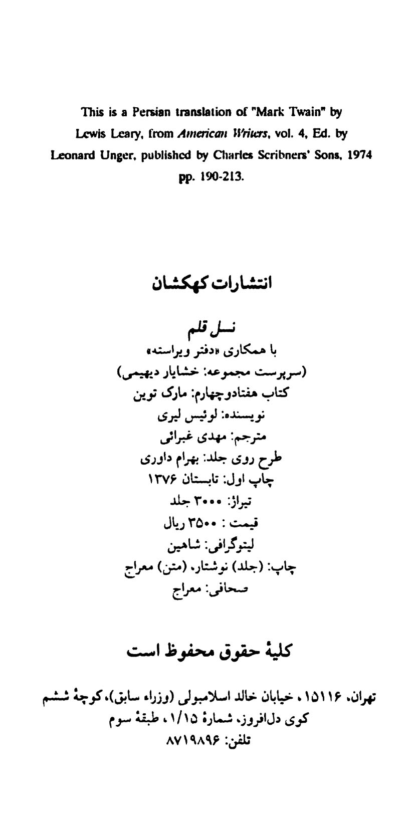 🔖 book_keywords : دانلود فایل pdf مارک توین نوشته لوئیس لیری ترجمه مهدی غبرائی