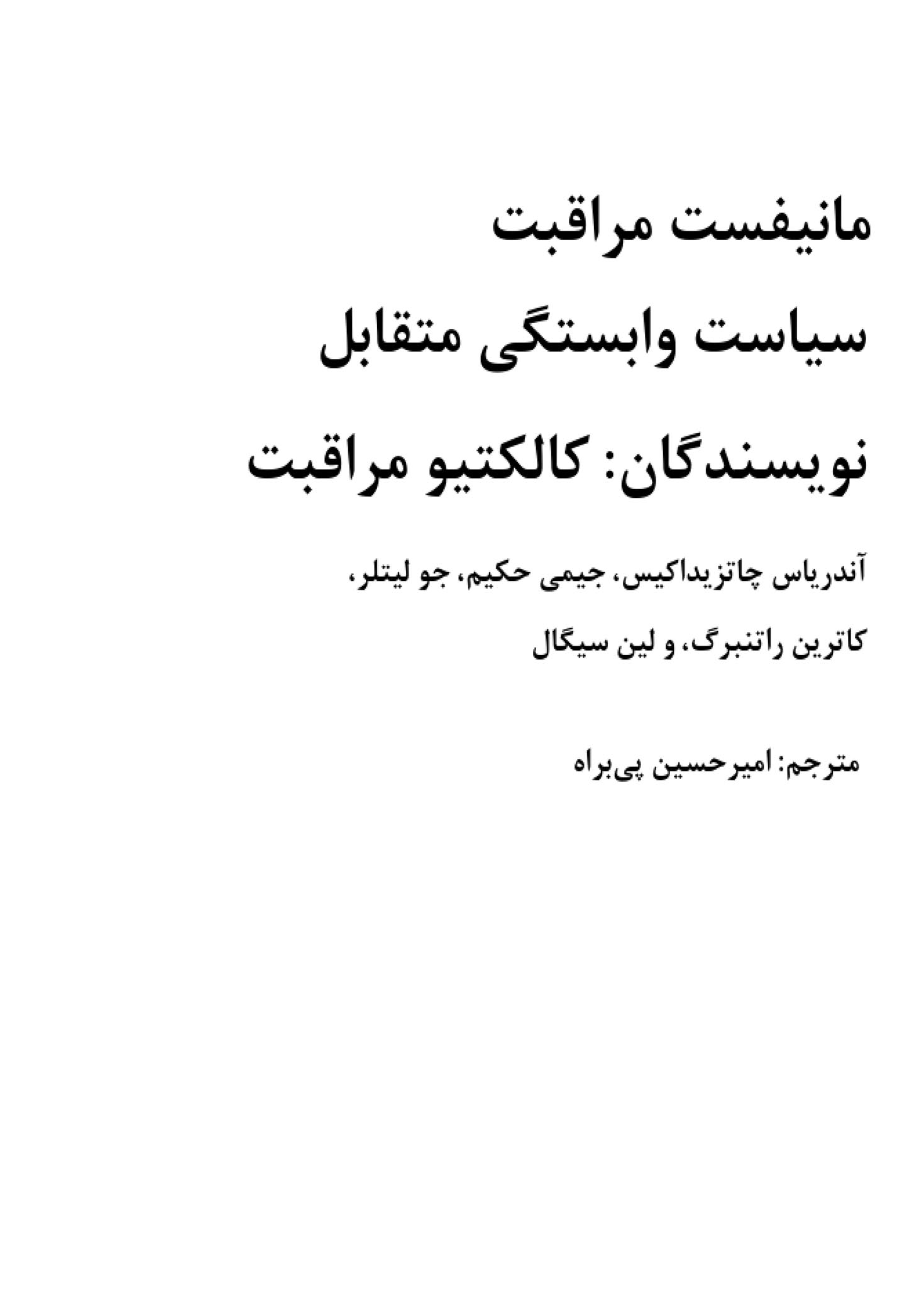 🔖 book_keywords : دانلود فایل pdf مانیفست مراقبت : سیاست وابستگی متقابل نوشته آندریاس چاتزایداکیس، جیمی حکیم، جو لیتلر، کاترین راتنبرگ، لین سیگال ترجمه امیرحسین پیبراه