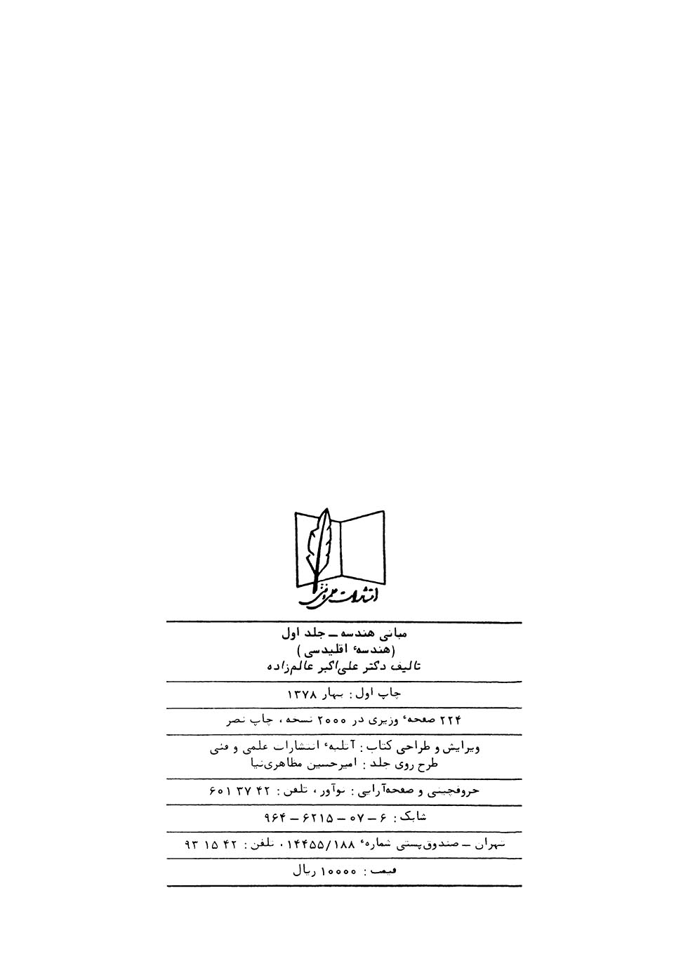 🔖 book_keywords : دانلود فایل pdf مبانی هندسه – جلد ۱: هندسه اقلیدسی نوشته علی اکبر عالم زاده