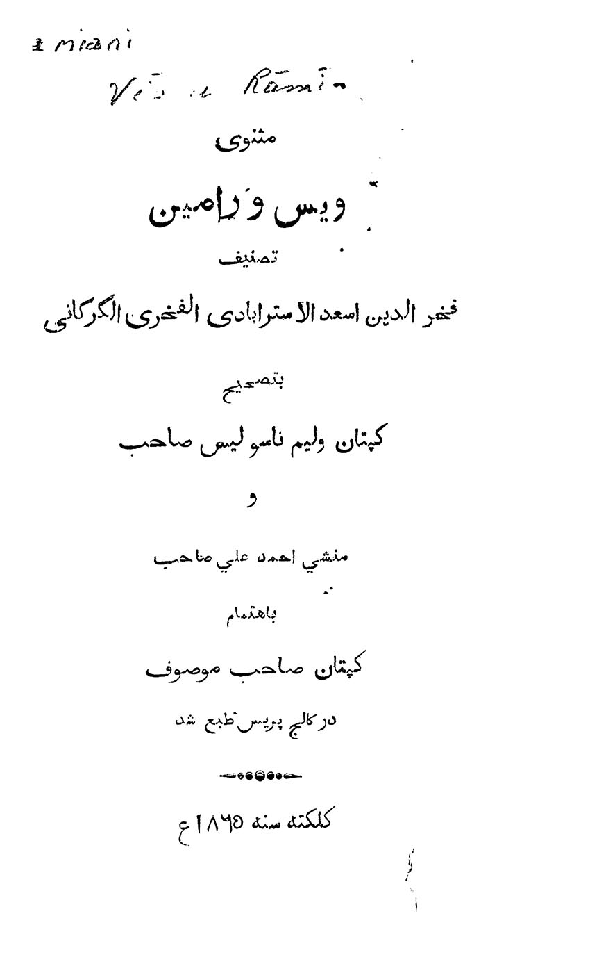 🔖 book_keywords : دانلود فایل pdf مثنوی ویس و رامین نوشته فخرالدین اسعد گرگانی ترجمه به تصحیح: کپتان ولیم ناسولیس صاحب