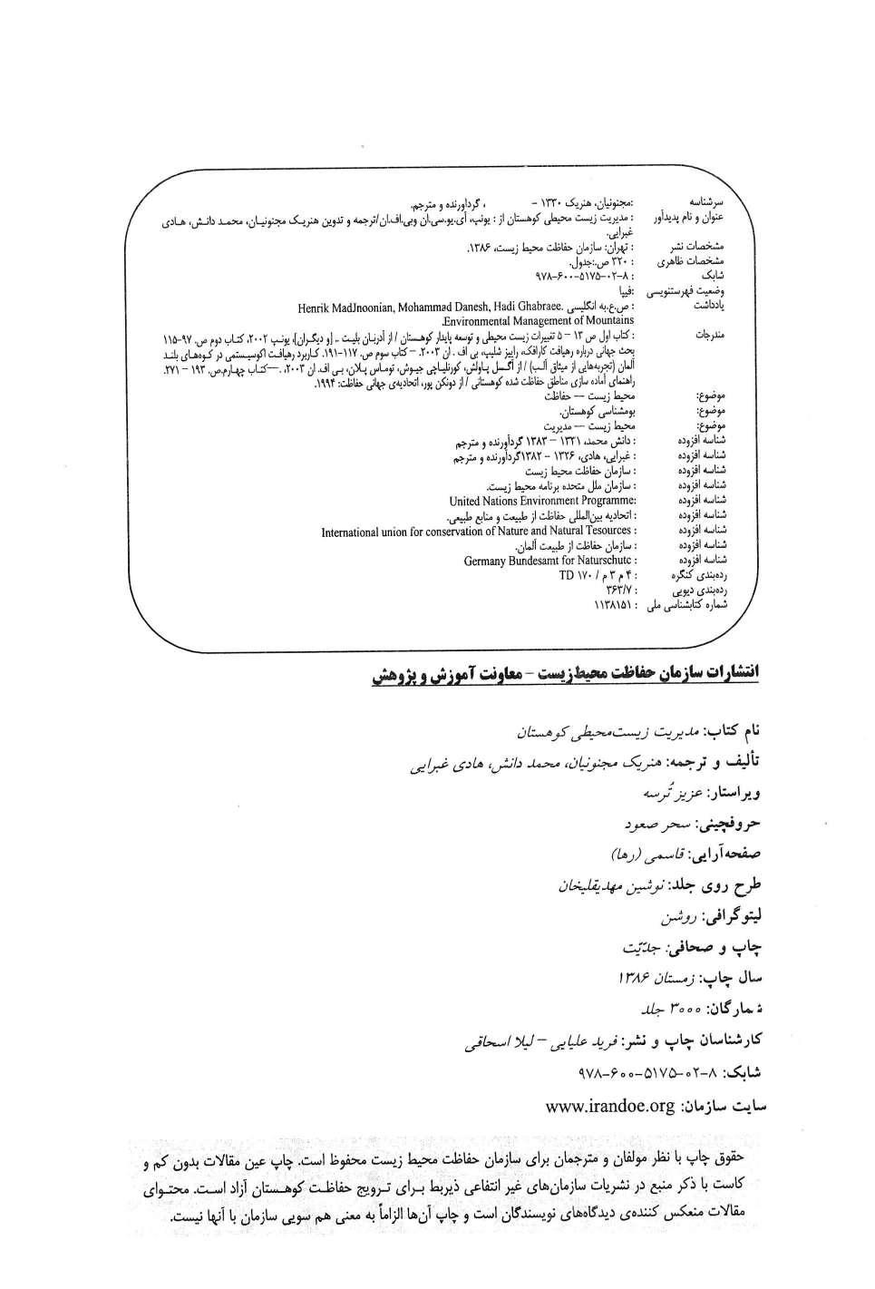 🔖 book_keywords : دانلود فایل pdf مدیریت زیست محیطی کوهستان نوشته هنریک مجنونیان
