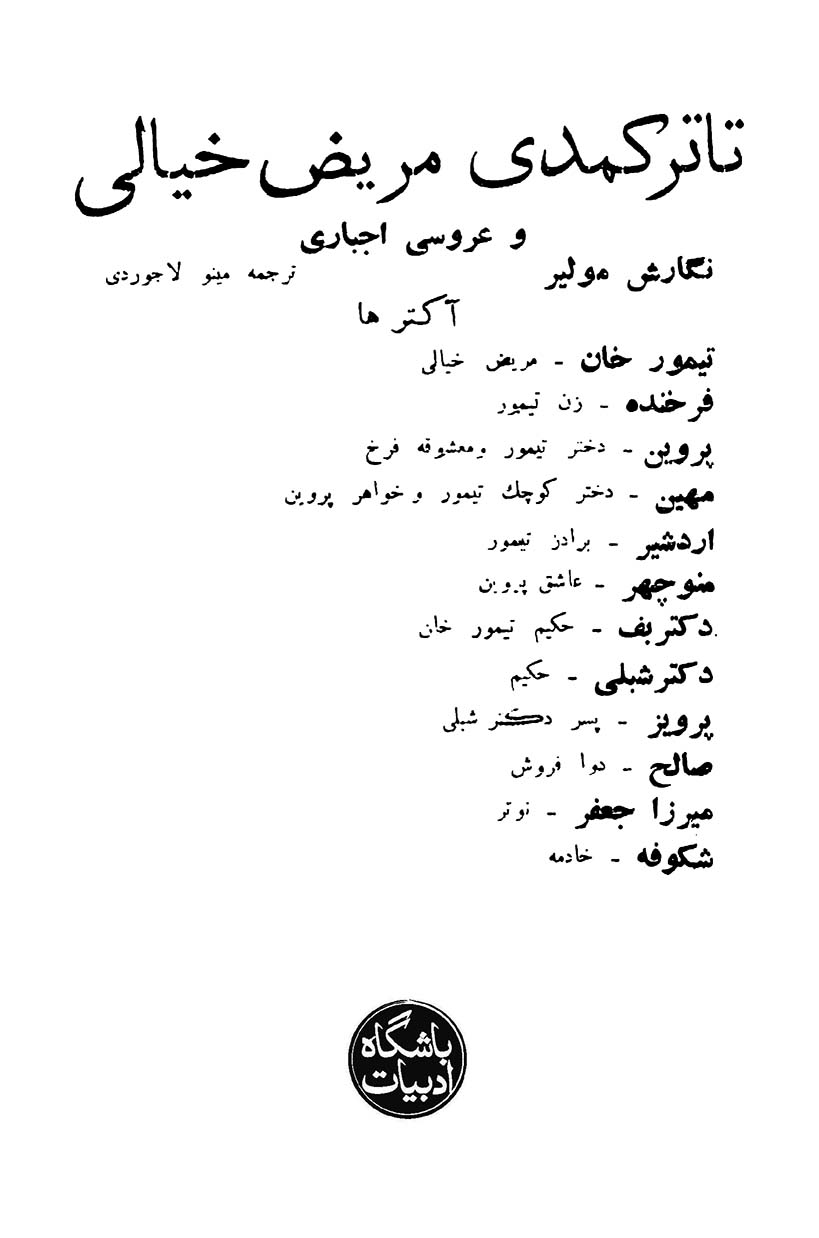 🔖 book_keywords : دانلود فایل pdf مریض خیالی نوشته مولیر ترجمه مینو لاجوردی