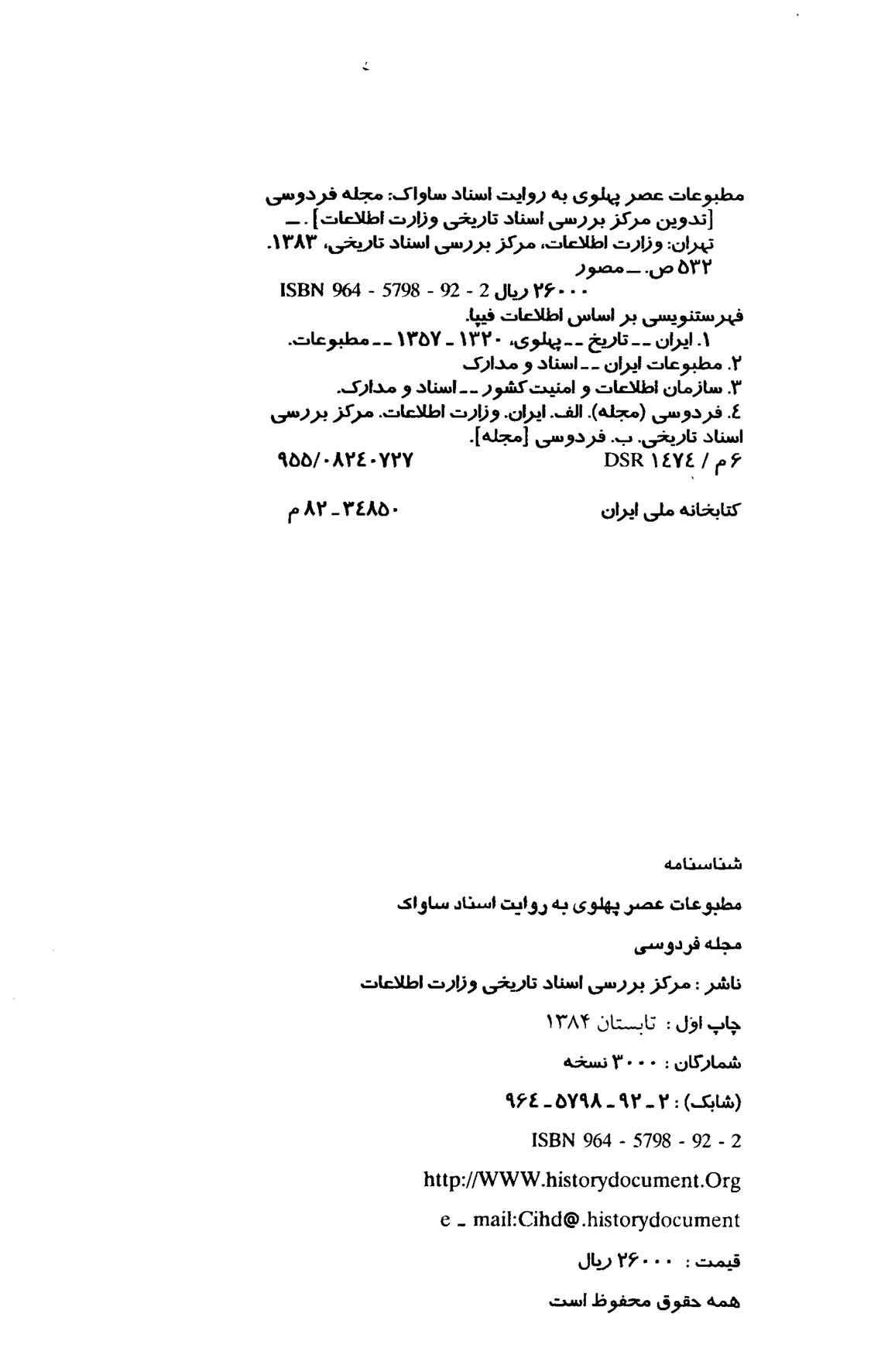 مطبوعات عصر پهلوی به روایت اسناد ساواک – کتاب ۸ – مجله فردوسی
