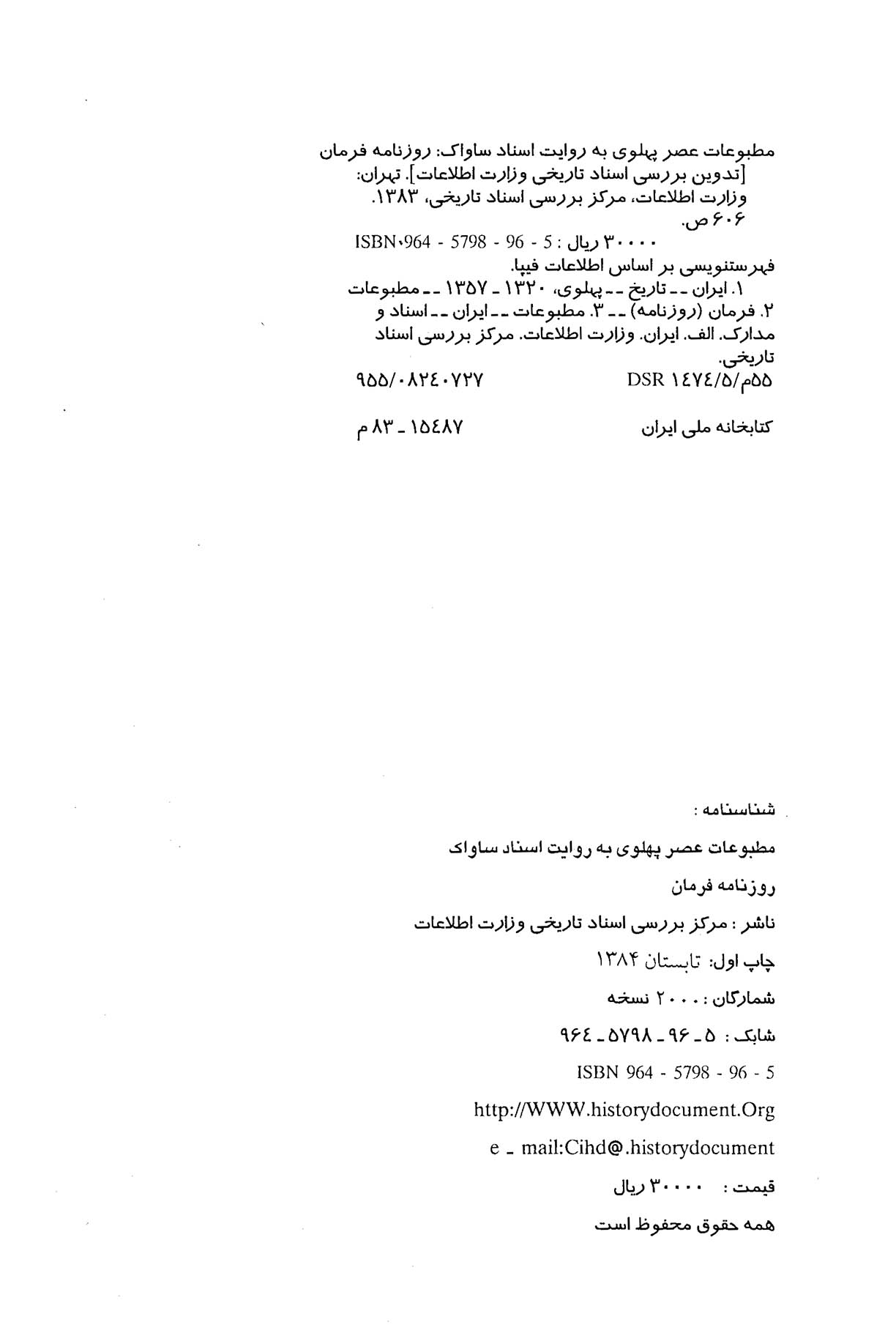 مطبوعات عصر پهلوی به روایت اسناد ساواک – کتاب ۹ – روزنامه فرمان