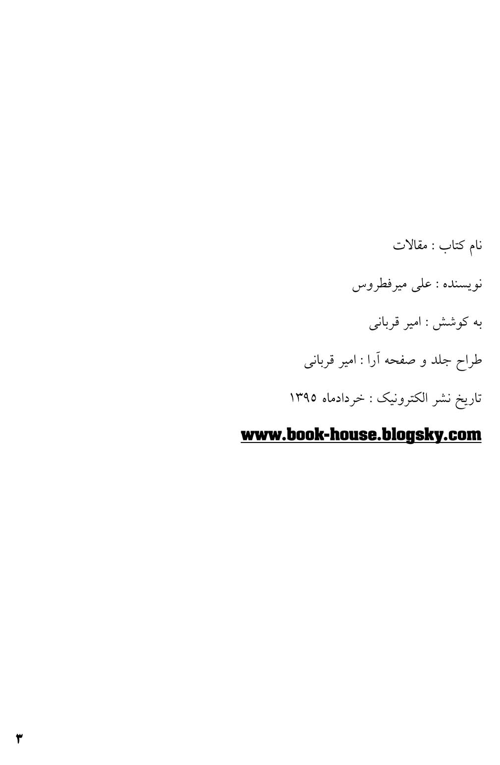 🔖 book_keywords : دانلود فایل pdf مقالات علی میرفطروس نوشته علی میرفطروس ترجمه به کوشش : امیر قربانی