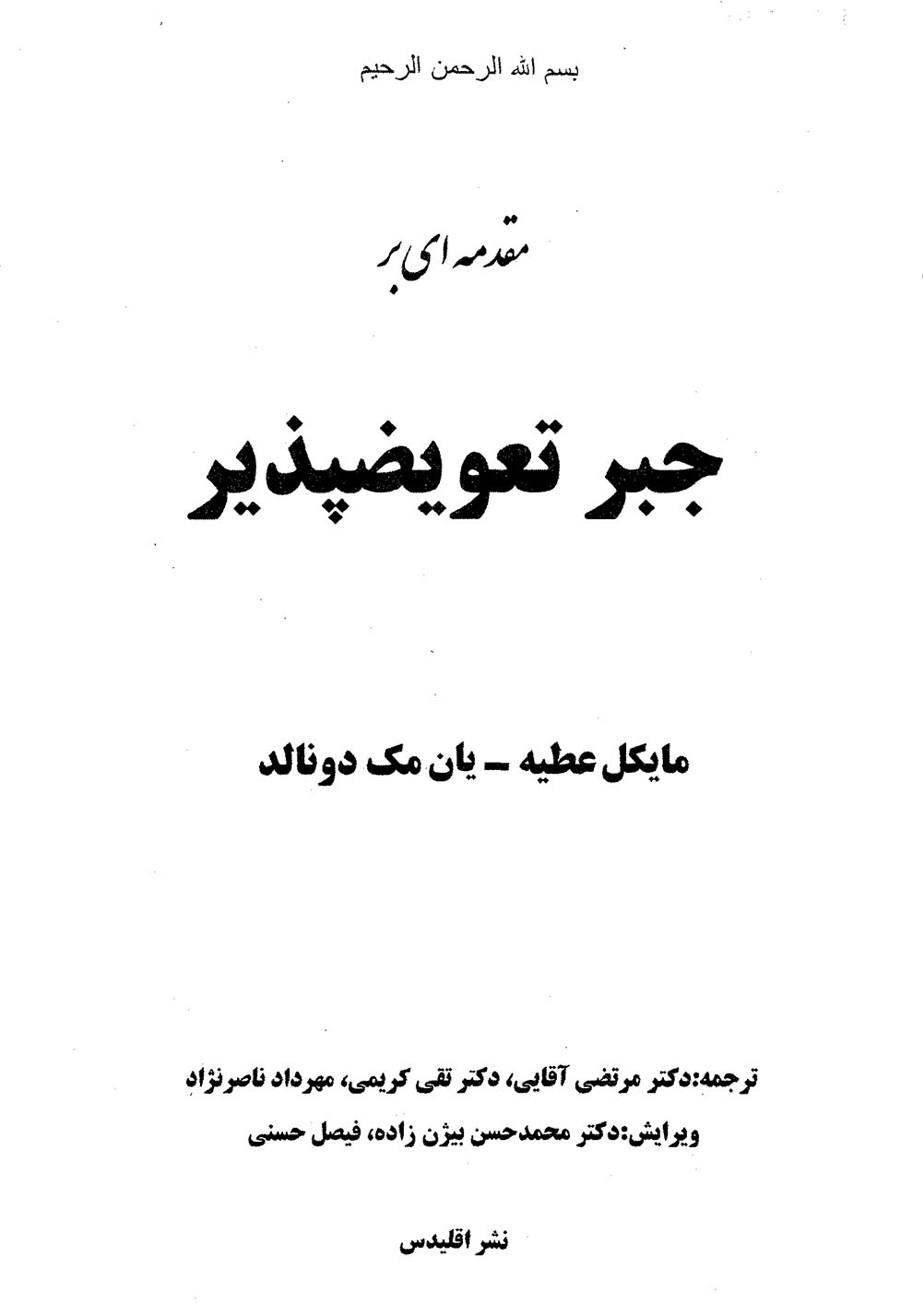 🔖 book_keywords : دانلود فایل pdf مقدمه ای بر جبر تعویضپذیر نوشته عطیه ، مایکل‌فرانسیس – مک‌دونالد ، ایان ترجمه آقایی ، مرتضی – کریمی ، تقی -ناصرنژاد ، مهرداد