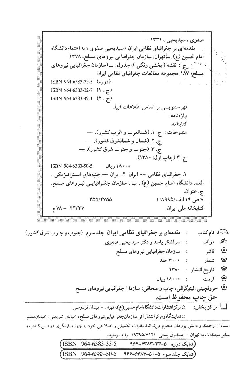 🔖 book_keywords : دانلود فایل pdf مقدمه ای بر جغرافیای نظامی ایران (جلد ۳) نوشته سیدیحیی صفوی