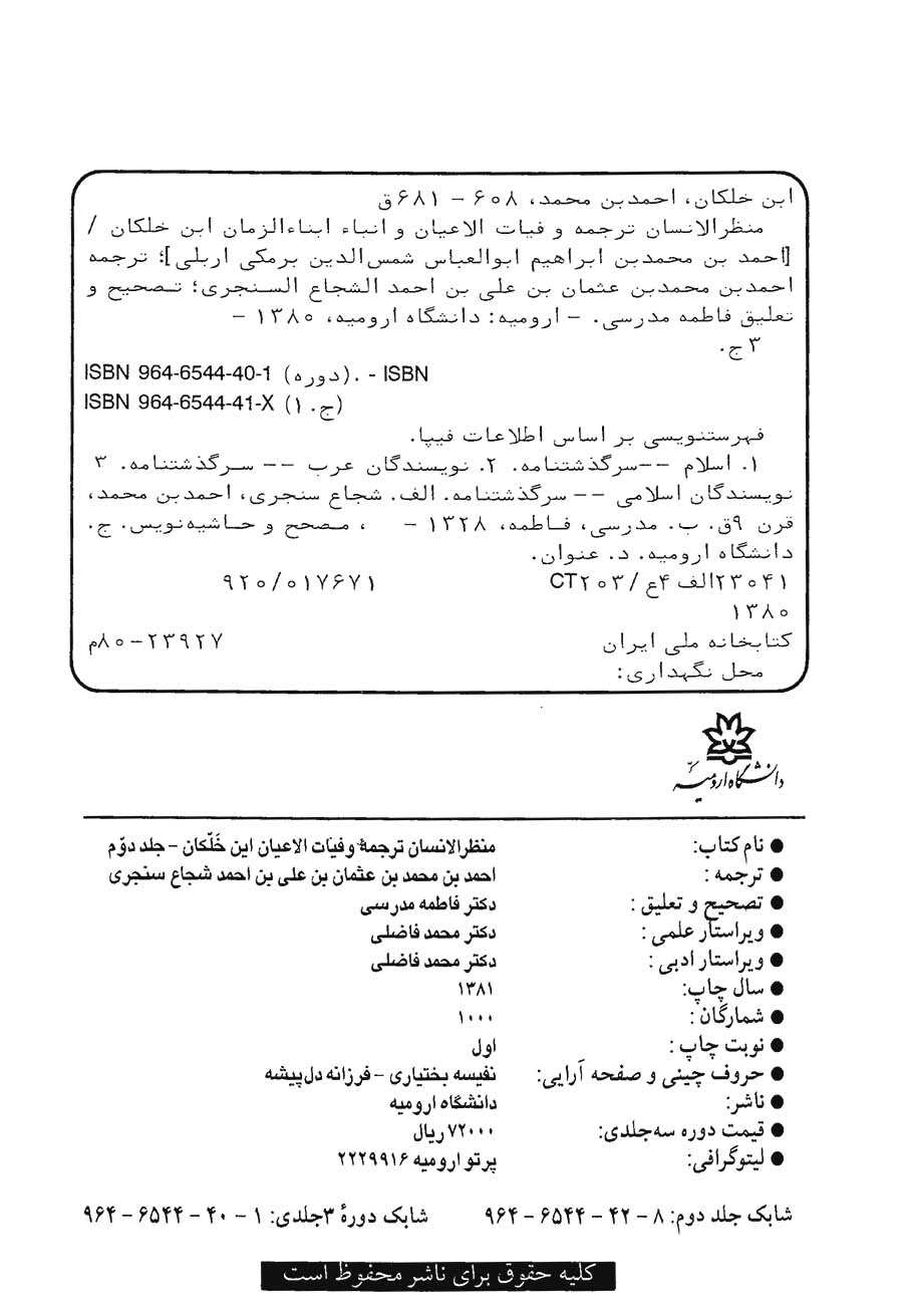 | شناسنامۀ کتاب | مؤلف: احمدبنمحمد ابنخلکان |