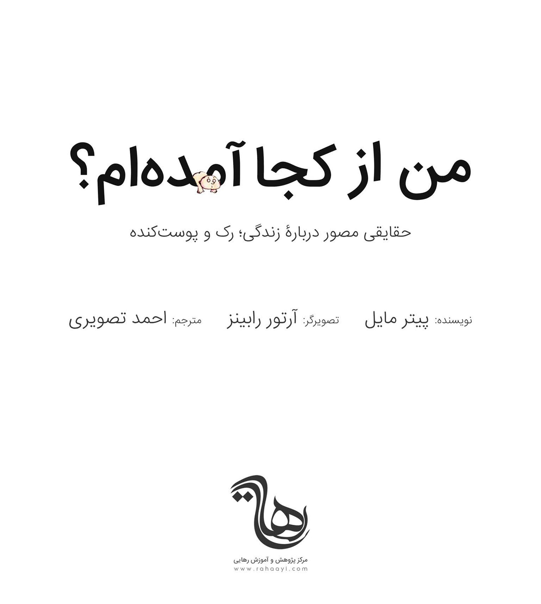 کتاب من از کجا آمده ام اثر پیتر مایل با ترجمه احمد تصویری است. ما برای نوشتن این کتاب دست به کار شدیم، چون فکر می کردیم تو حتما دوست داری بدانی چطور به وجود آمده ای.