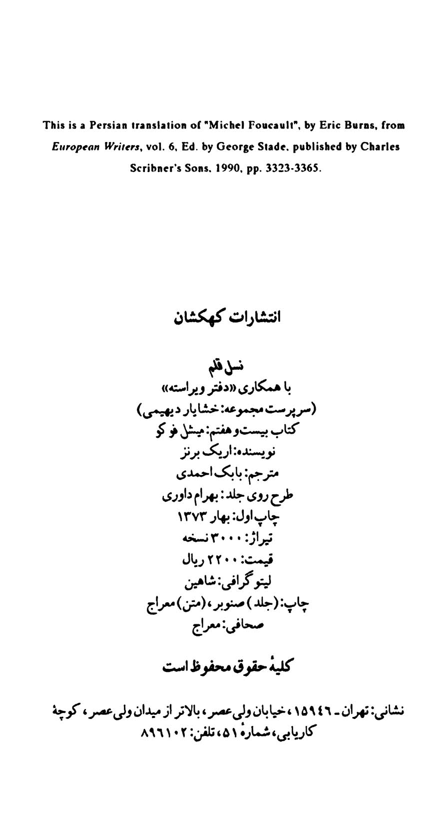 🔖 book_keywords : دانلود فایل pdf میشل فوکو نوشته اریک برنز ترجمه بابک احمدی