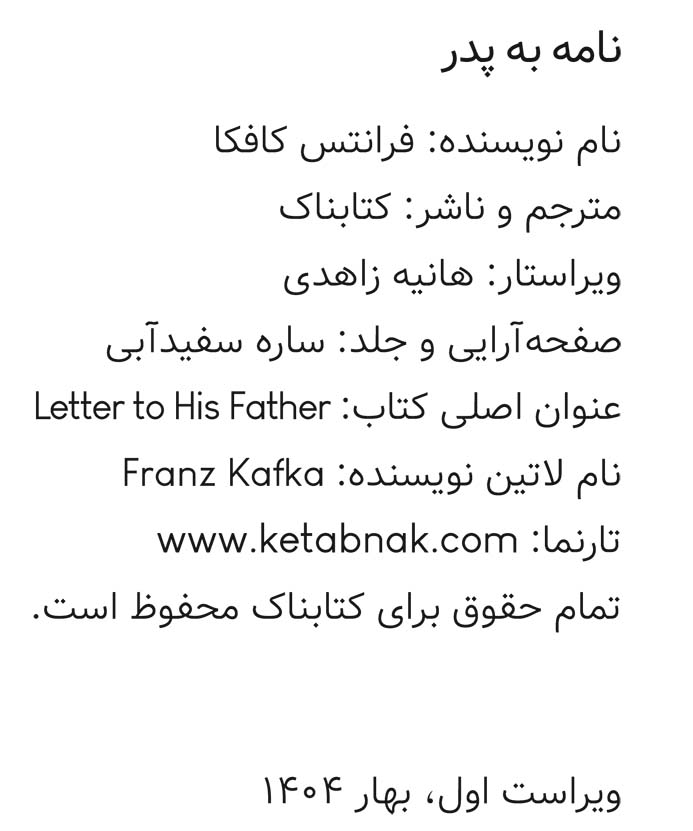 «نامه به پدر» همچون گواهی صادقانه از دردها و رنجهای روحی یک نویسنده بزرگ، همزمان یک اثر ادبی استثنایی و سندی روانشناختی است که پس از گذشت بیش از یک قرن، همچنان خوانندگان را به تامل در روابط خانوادگی و تاثیر ناخودآگاه والدین بر سرنوشت فرزندان وا میدارد.