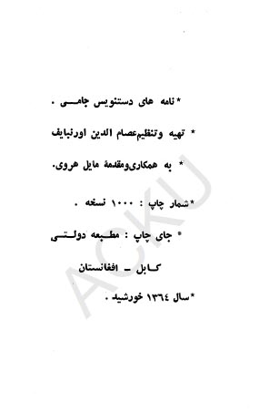 کابل : اکادمی علوم ج.د.ا.مرکز زبانها وادبیات، 1364.