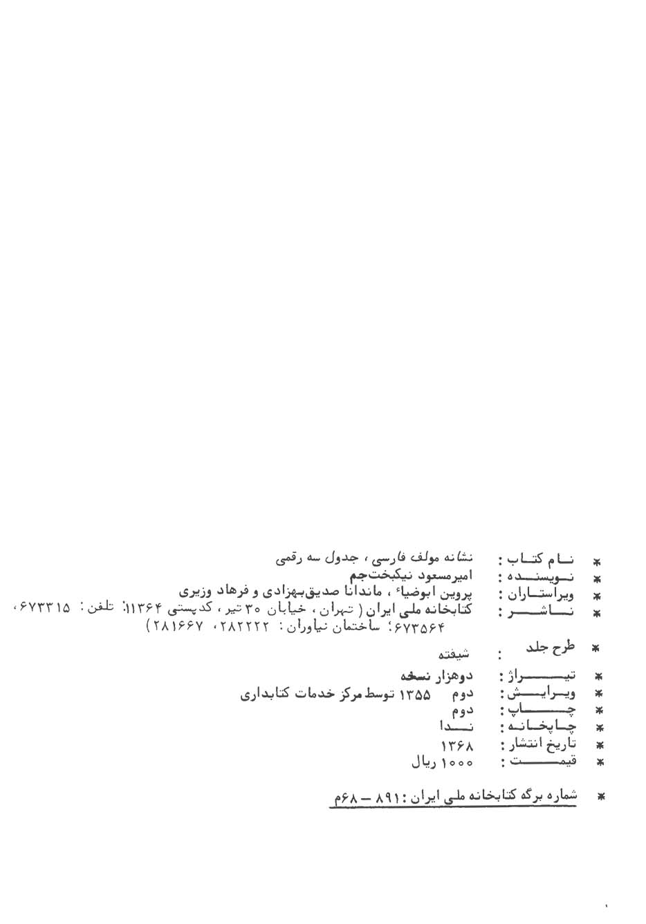 نشانه مولف فارسی: جدول سه رقمی مبتنی بر کاتر – سنبرن