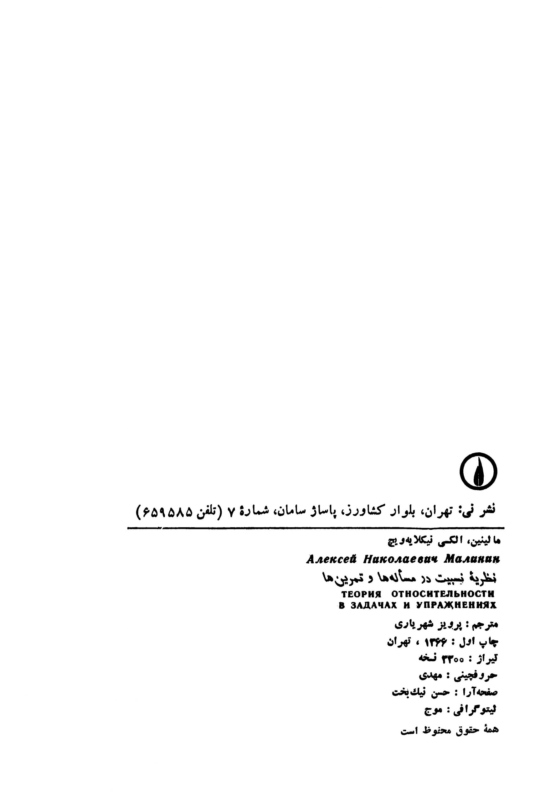 🔖 book_keywords : دانلود فایل pdf نظریه نسبیت در مساله ها و تمرین ها نوشته الکسی نیکلایه ویچ مالینین ترجمه پرویز شهریاری