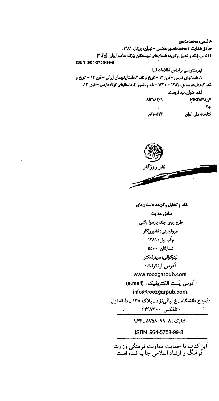 🔖 book_keywords : دانلود فایل pdf نقد و تحلیل و گزیده داستانهای صادق هدایت نوشته محمد منصور هاشمی