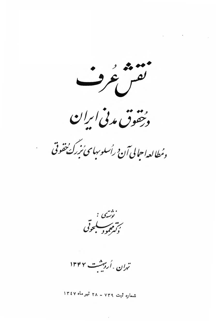 🔖 book_keywords : دانلود فایل pdf نقش عرف در حقوق مدنی ایران نوشته محمود سلجوقی