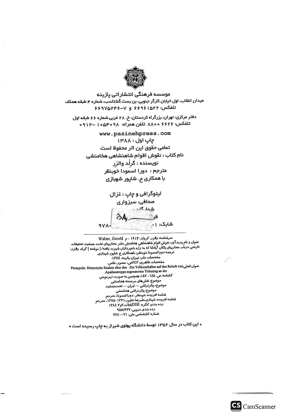 🔖 book_keywords : دانلود فایل pdf نقوش اقوام شاهنشاهی هخامنشی نوشته گرلد والزر ترجمه دورا اسمودا خوبطنر