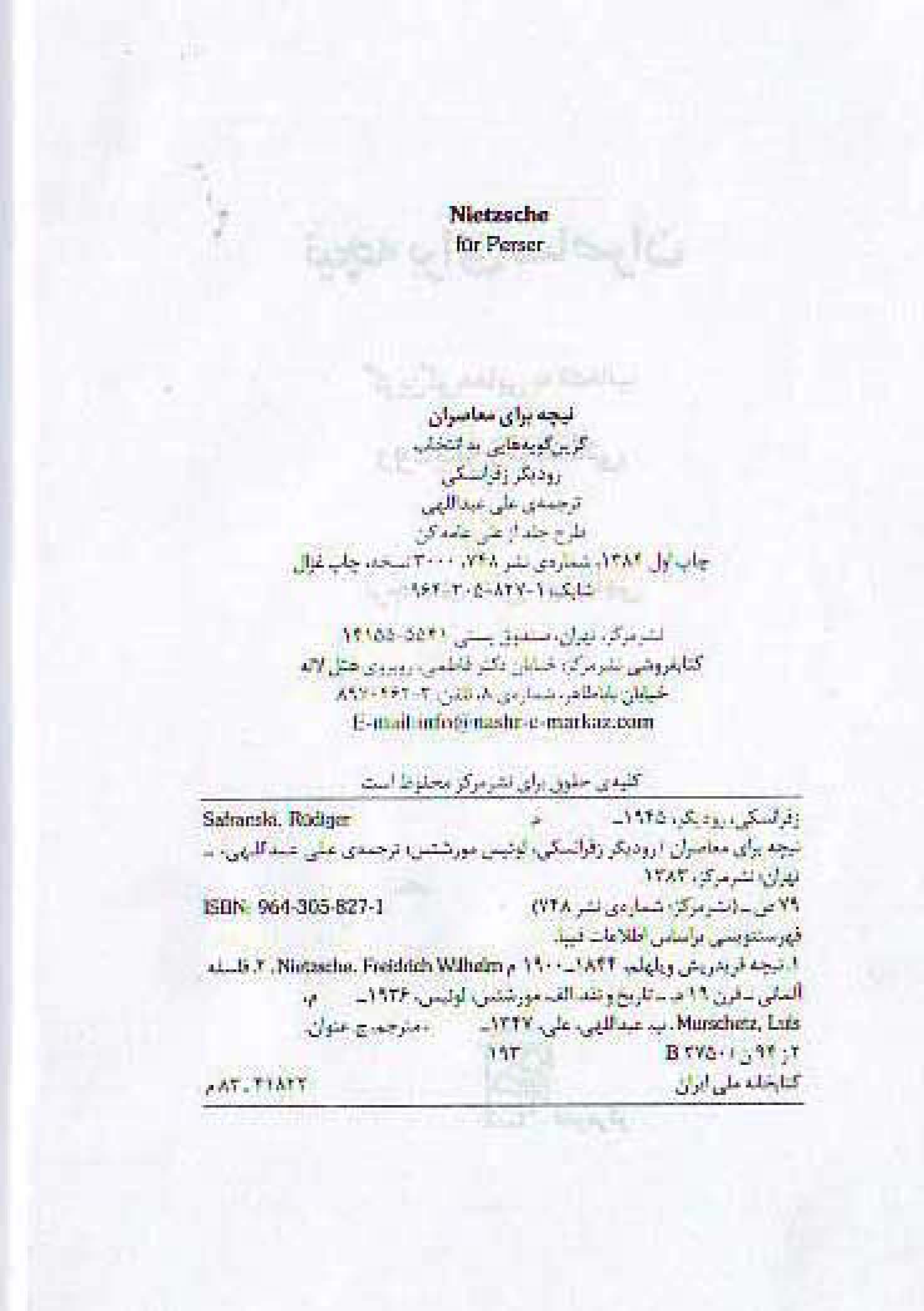 🔖 book_keywords : دانلود فایل pdf نیچه برای معاصران نوشته رودیگر زفرانسکی ترجمه علی عبداللهی