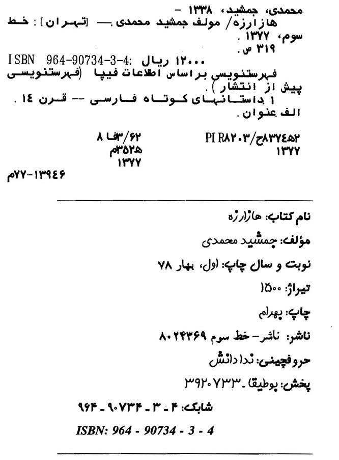 عنوان و نام پدیدآور هازارزه‌/ مولف جمشید محمدی‌