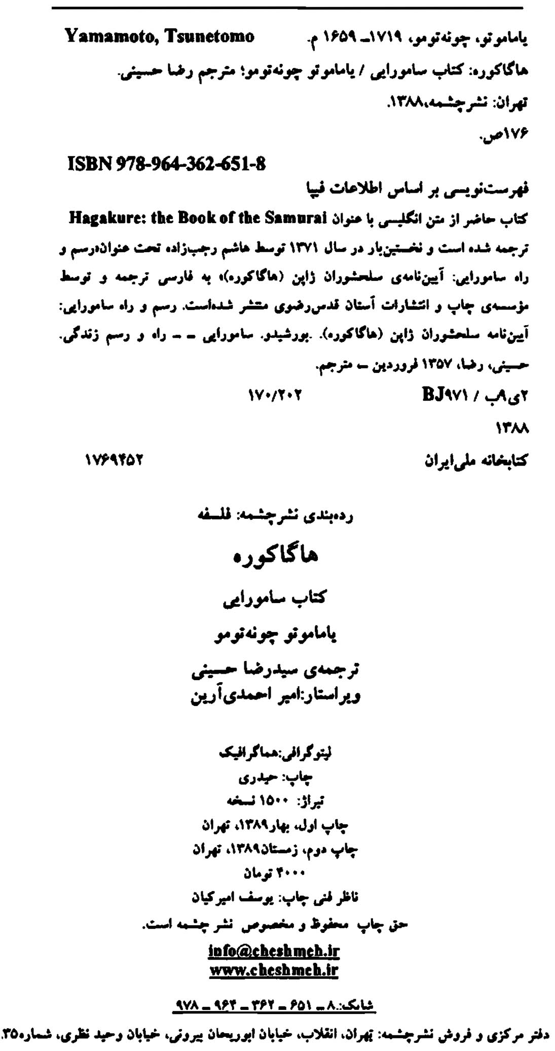 🔖 book_keywords : دانلود فایل pdf هاگاکوره: کتاب سامورایی نوشته یاماموتو چوئه تومو ترجمه رضا حسینی