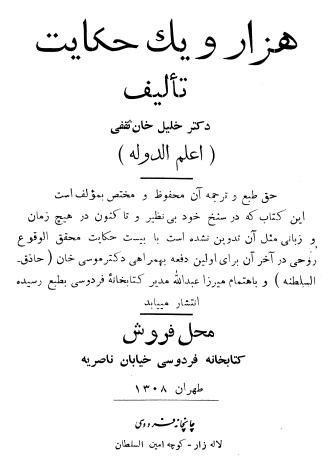 🔖 book_keywords : دانلود فایل pdf هزار و یک حکایت نوشته خلیل خان ثقفی
