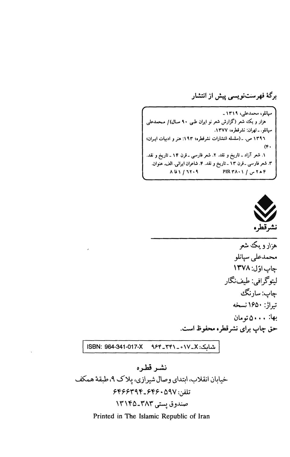 🔖 book_keywords : دانلود فایل pdf هزار و یک شعر (گزارش شعر نو ایران طی ۹۰ سال) نوشته محمدعلی سپانلو