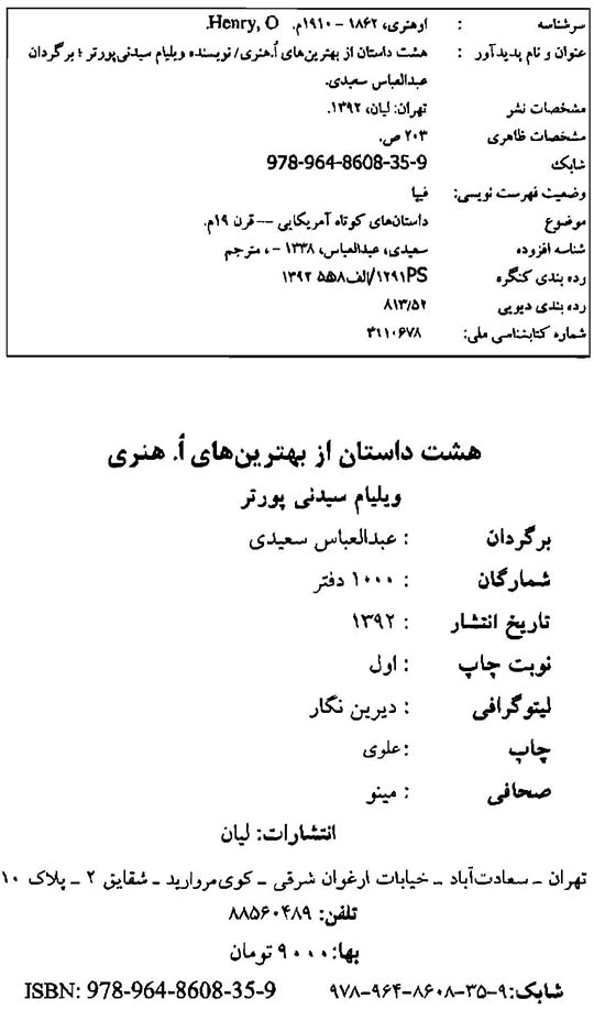 🔖 book_keywords : دانلود فایل pdf هشت داستان از بهترین های اُ. هنری نوشته ویلیام سیدنی پورتر ترجمه عبدالعباس سعیدی