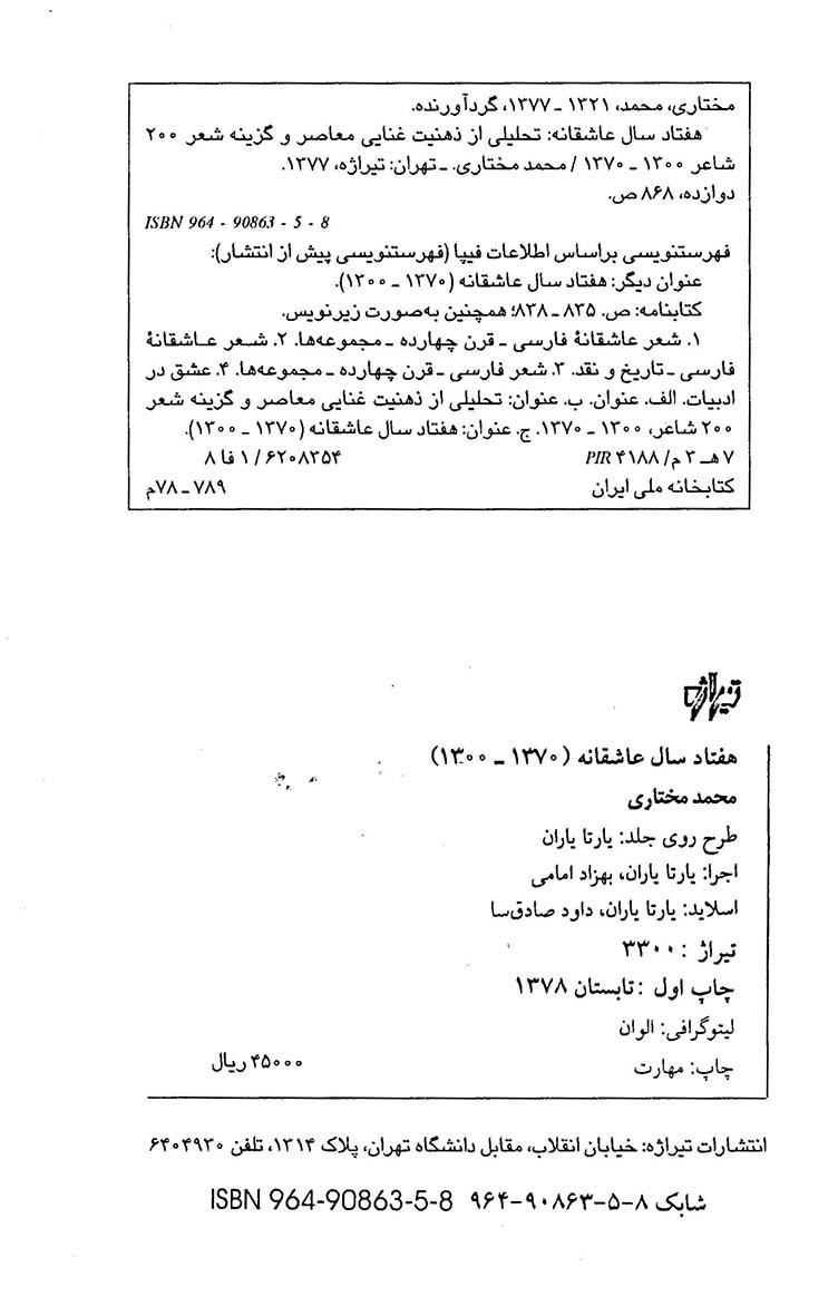 🔖 book_keywords : دانلود فایل pdf هفتاد سال عاشقانه نوشته محمد مختاری