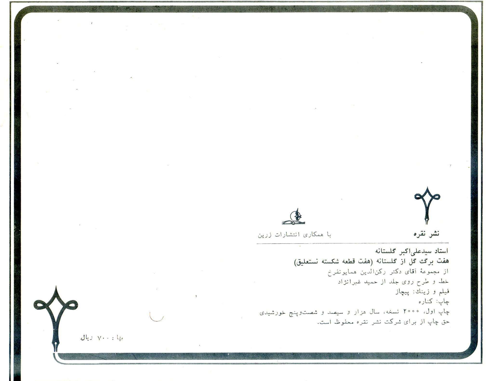 هفت برگ گل ازگلستانه: هفت قطعه شکسته نستعلیق