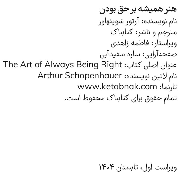 🔖 book_keywords : دانلود فایل pdf هنر همیشه بر حق بودن نوشته آرتور شوپنهاور ترجمه عرفان ثابتی