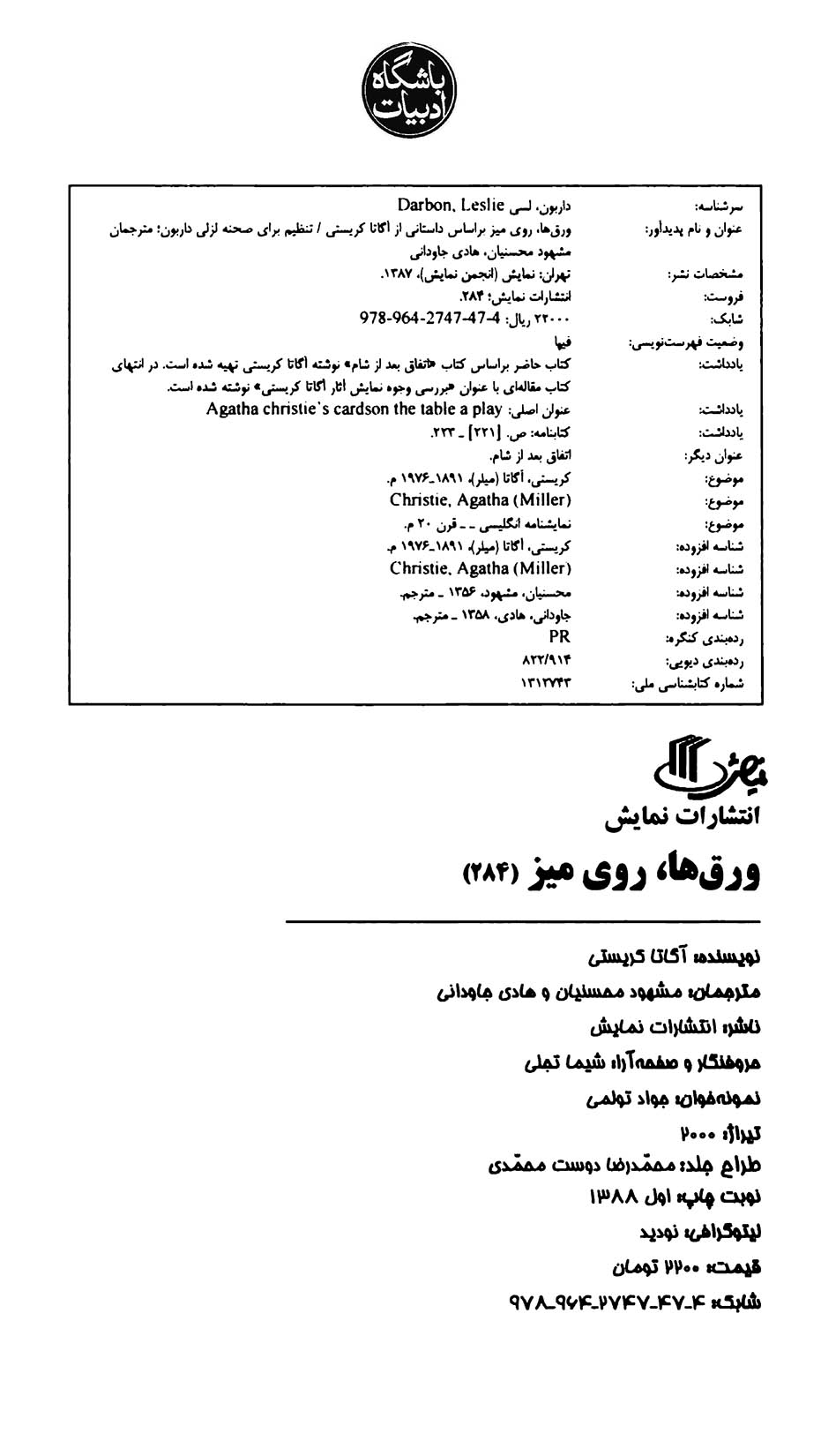 🔖 book_keywords : دانلود فایل pdf ورقها، روی میز : نمایشنامه نوشته آگاتا کریستی