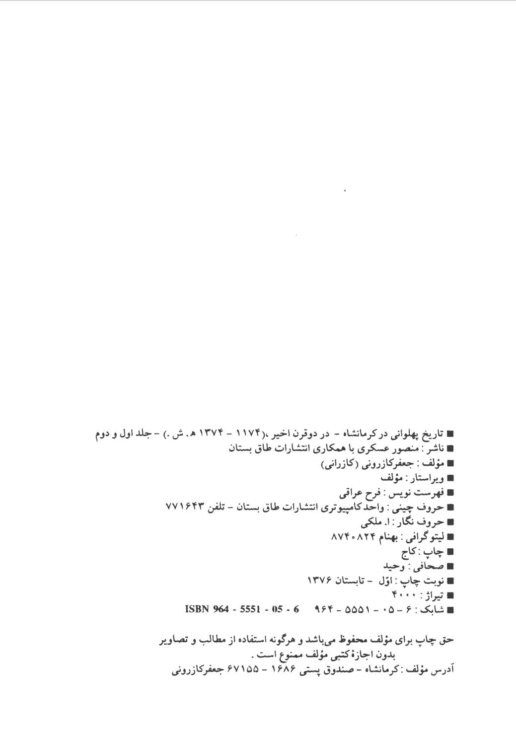 🔖 book_keywords : دانلود فایل pdf پهلوانان: تاریخ پهلوانی در کرمانشاه در دو قرن اخیر، ۱۳۷۴-۱۱۷۴)ه. ش.) – جلد اول نوشته جعفر کازرونی
